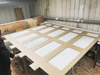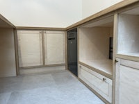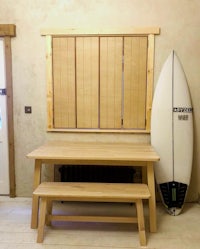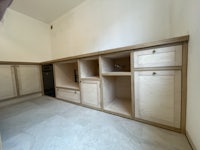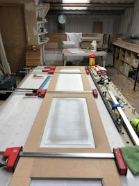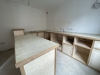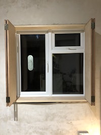 BIRCH PLY SHUTTERS/OAK FRAMING/LIME RENDER WORKS